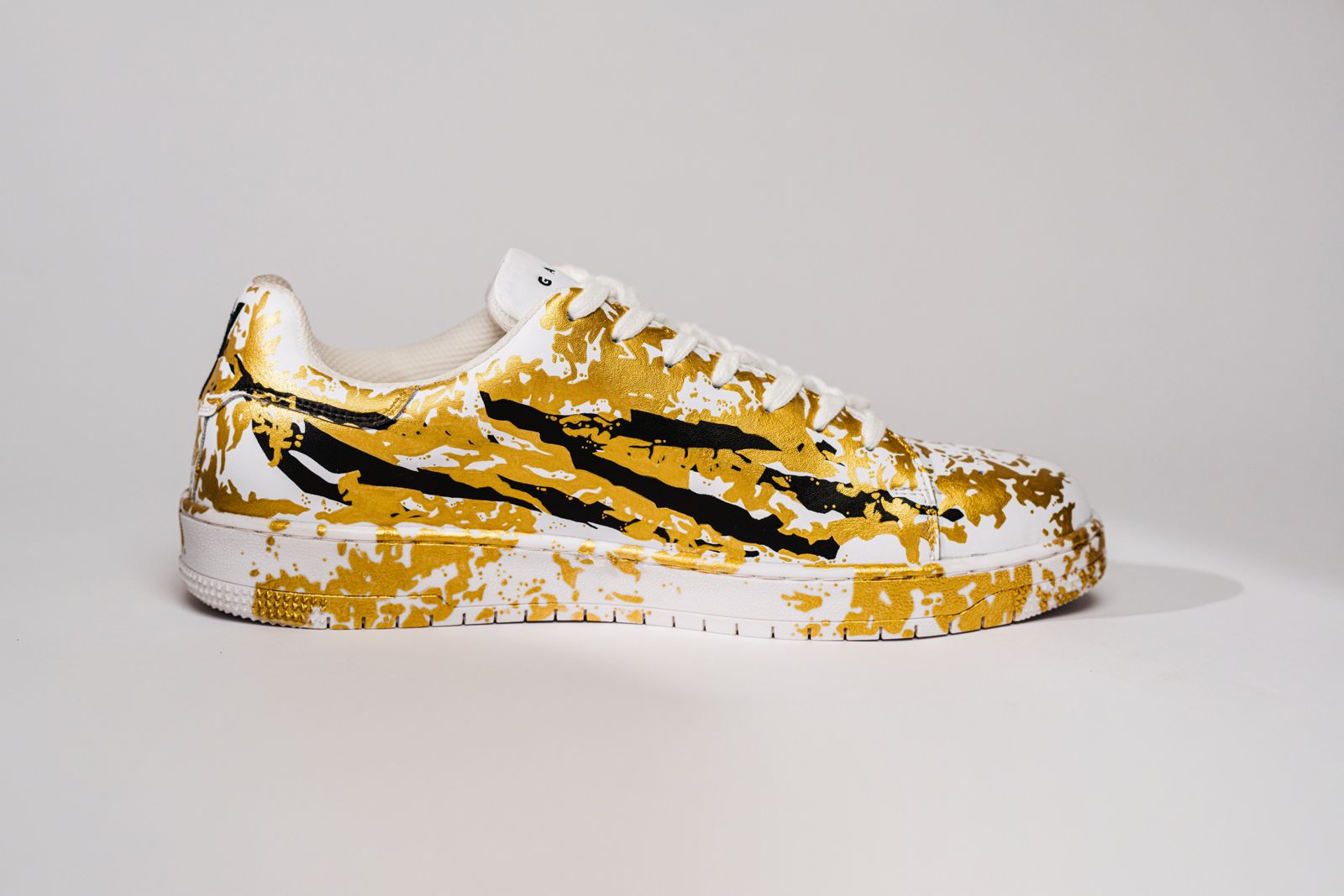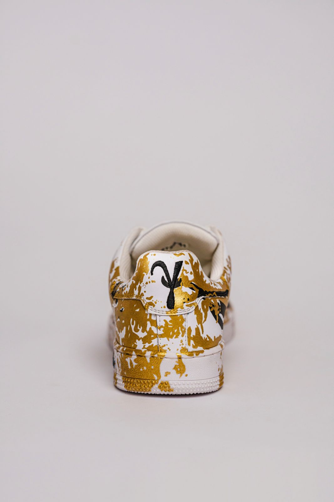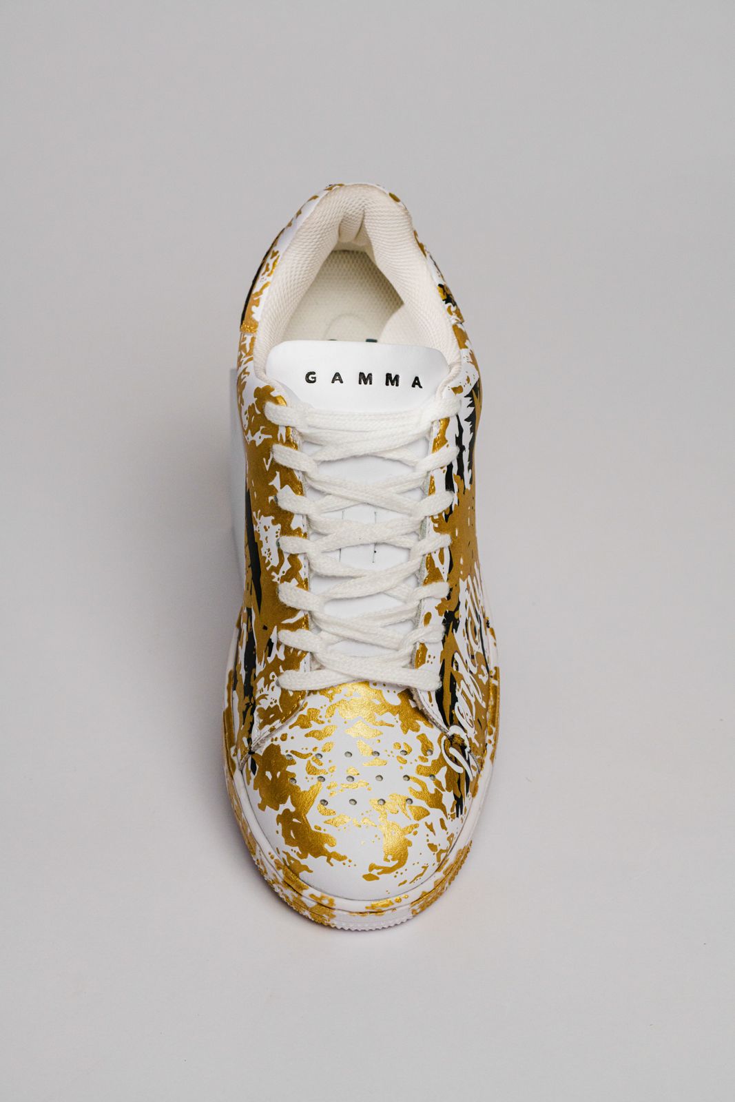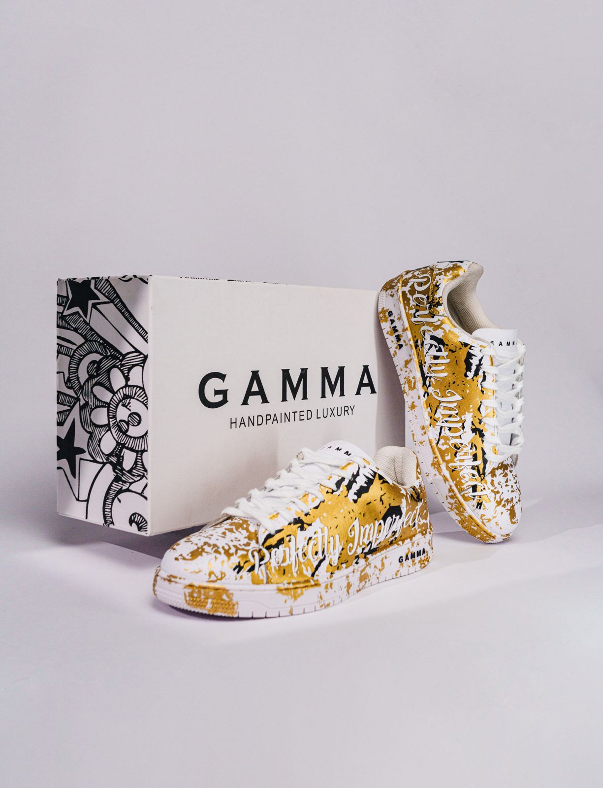 This sneaker showcases a premium white canvas with touches of gold and black detailing, delivering an artistic style. Bold yet authentic, the design is elevated by the hand-written phrase Perfectly Imperfect along the side, honouring individuality. It celebrates the beauty in flaws, reminding us that authenticity is the purest form of perfection.